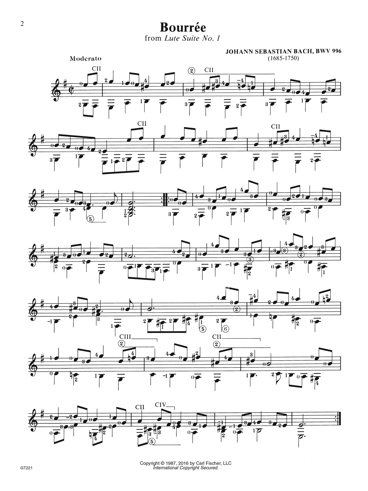 Johann Sebastian Bach�s (1685 - 1750) extensive legacy remains unmatched in the modern, musical community. His music, altogether timeless, singable, and entrancing, has inspired and challenged generations of musicians on almost every instrument. This collection, edited by Fred Sokolow, puts nine of Bach�s most memorable melodies at the fingertips of the modern guitarist, including selections from his famous suites for both cello and lute. Well known as a performer and pedagogue, and praised for his accurate and effective methods and transcriptions, Fred Sokolow has drawn upon his wealth of experience with the guitar to help craft this challenging, yet accessible, set of melodies.