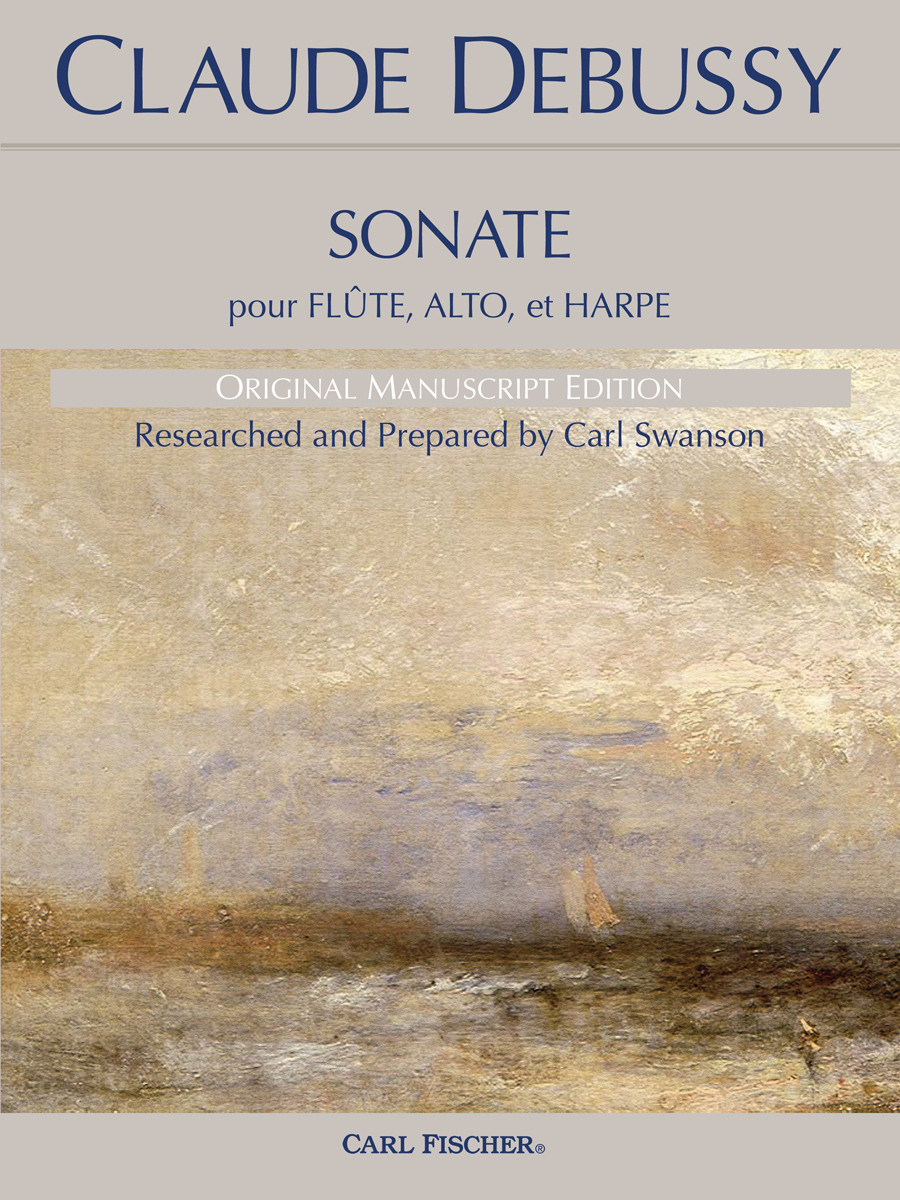 New York, NY — Carl Fischer Music announces the release of a critically edited version of Claude Debussy�s Sonate pour Flûte, Alto, et Harpe (MXE46 - Score and Parts - $39.99; MXE46L - Large Score [Harp] - $35.00). Almost 100 years after the first publication of this piece by Durand et Cie, this seminal work in the chamber music literature has been meticulously compared, contrasted, and corrected against Debussy�s handwritten and autographed 1915 manuscript by harpist and scholar Carl Swanson. Using photographs provided by the National Library of France, Mr. Swanson documented and corrected over 100 discrepancies between Debussy�s intent and the Durand 1916 edition.